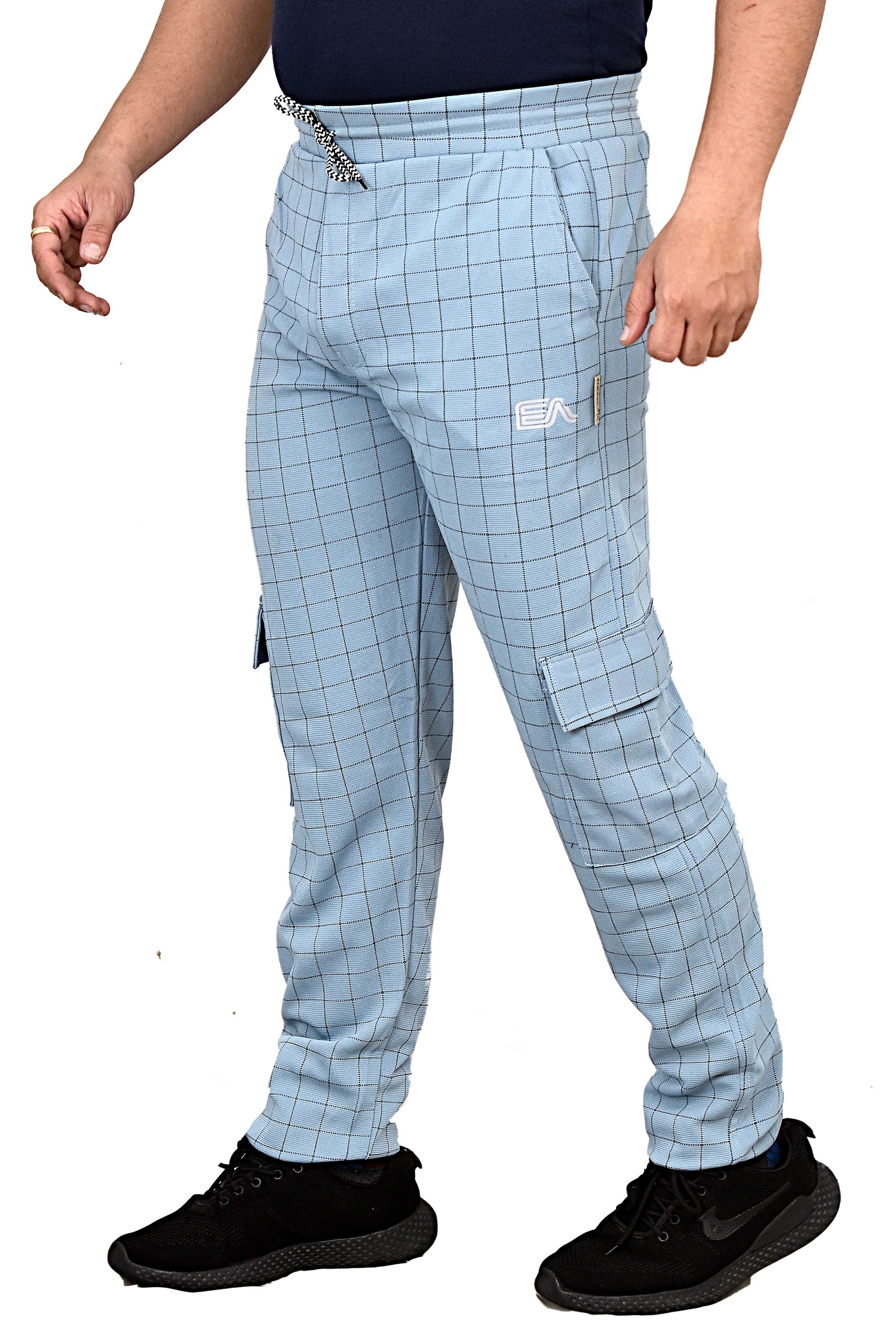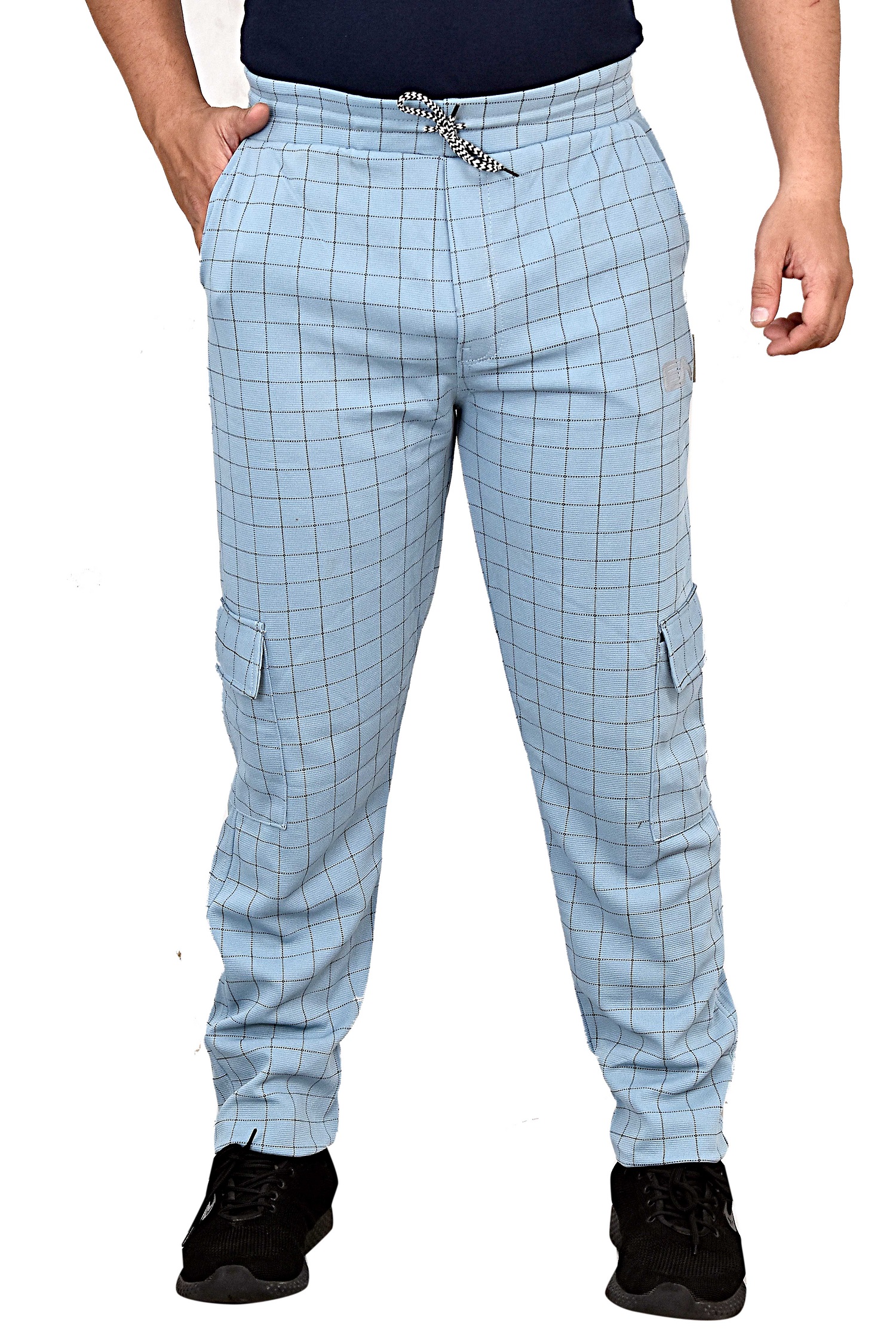 Pack of 9Pcs Wholesale Catalogue Men’s Checks Trackpants RDE-30 ,Color-Sky Blue