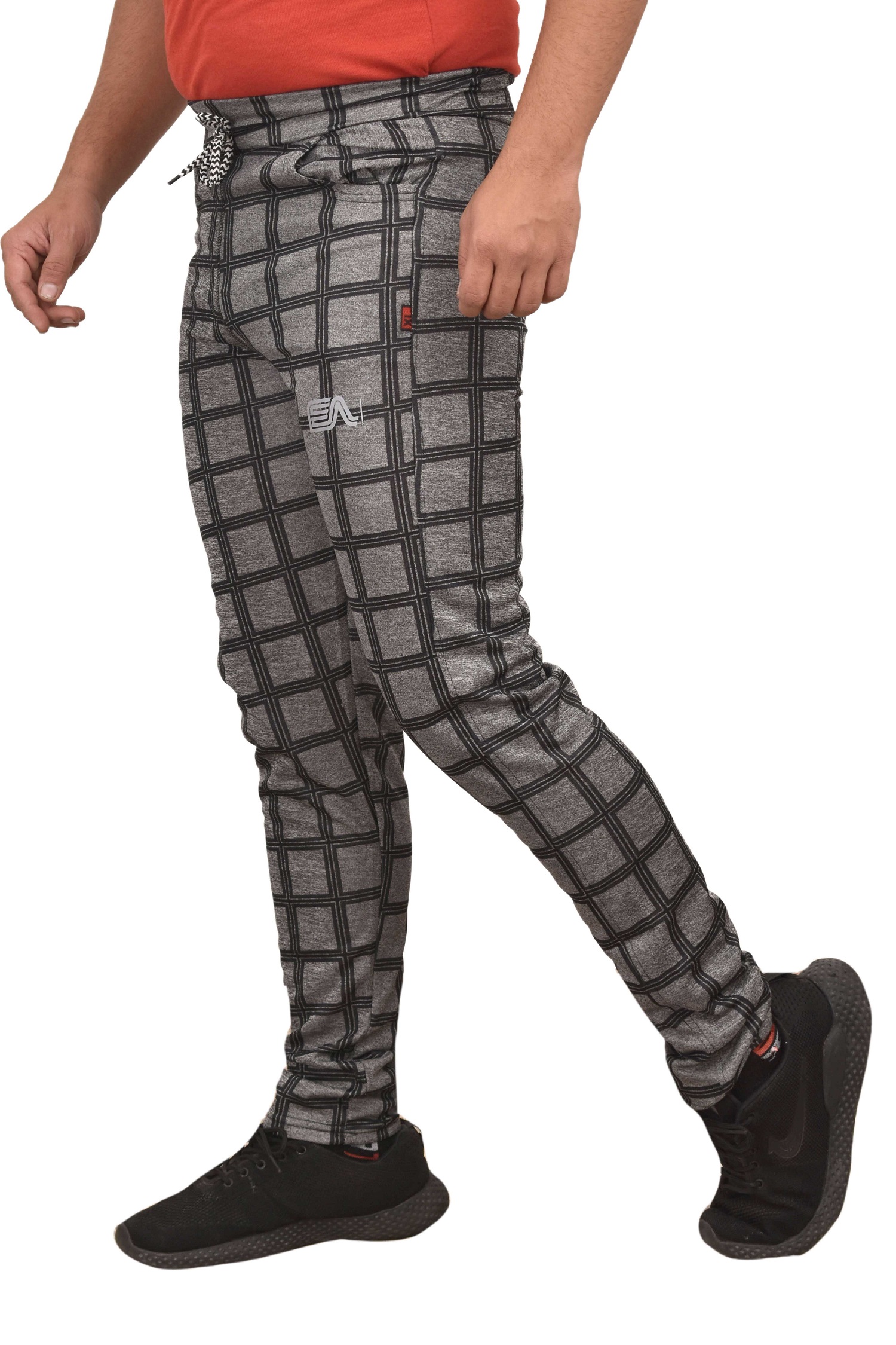 Pack of 9pcs Wholesale Catalogue Men’s Checks Trackpants RDE-49 , Black